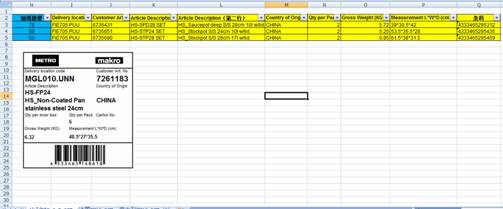 打印变化多信息的标签需提供相应的Excel格式的数据。如下图的服装标签的格式: